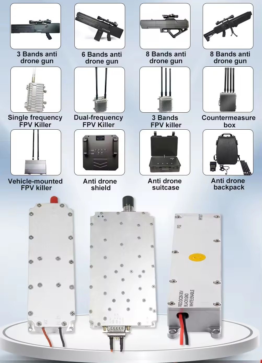 I nostri prodotti principali includono moduli RF e anti FPV, che sono progettati con tecnologia all'avanguardia e controllo di qualità rigoroso per soddisfare le diverse esigenze dei nostri clienti.Il modulo RF offre una trasmissione di segnali ad alte prestazioni e stabile, che consente una comunicazione senza soluzione di continuità in varie applicazioni.La soluzione anti FPV fornisce una protezione efficace contro le interferenze non autorizzate e garantisce la sicurezza e la privacy della trasmissione video.